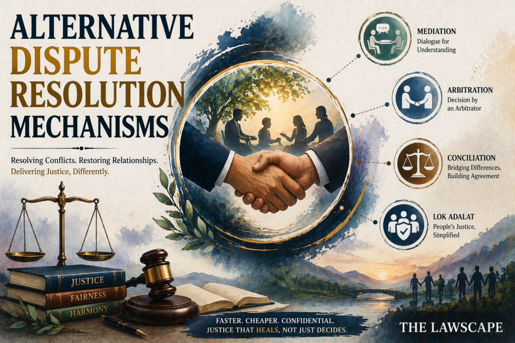 What happens when courts become overburdened and justice is delayed beyond reasonable limits? Can the traditional adversarial system alone meet the growing demands of a complex and rapidly evolving society? Alternative Dispute Resolution (ADR) emerges as a response to these pressing concerns. By providing mechanisms such as arbitration, mediation, and conciliation outside the conventional courtroom structure, ADR seeks to offer faster, flexible, and cost-effective resolution of disputes. In India, where judicial pendency remains a persistent challenge, statutory recognition under the Arbitration and Conciliation Act, 1996 reflects an institutional shift towards consensual justice. This article examines the evolving landscape of dispute resolution in India and the role ADR plays within it.