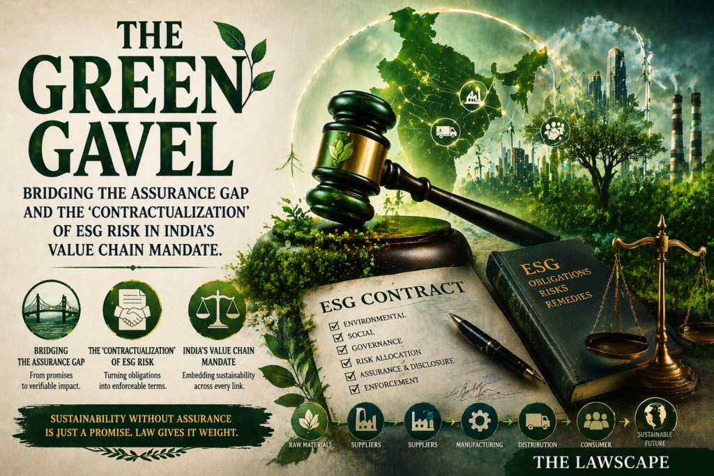 As of the FY 2025–2026 reporting cycle, the top 250 listed entities in India are no longer simply reporting on their internal operations — they are legally accountable for the ESG performance of their entire “Value Chain.” This mandate has given rise to what this article defines as the “Contractualization of ESG”: a phenomenon where public law mandates are enforced through private law instruments, namely contracts. This article explores the legal friction points where these new “Green Clauses” clash with established principles of Indian contract law.