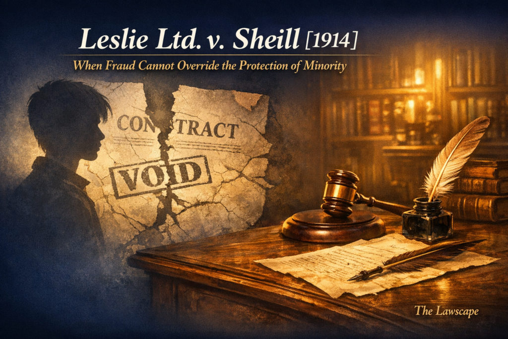 The case connects directly to the position under Indian law. In Mohori Bibee v. Dharmodas Ghose (1903) 30 IA 114 (PC), the Privy Council held that a contract entered into by a minor is void ab initio β not merely voidable. This principle, now firmly embedded in Indian contract jurisprudence, reinforces the reasoning in Leslie β if a minor’s contract is void from the outset, no remedy that produces the economic equivalent of enforcement can be permitted, whether framed in contract, tort, or equity.