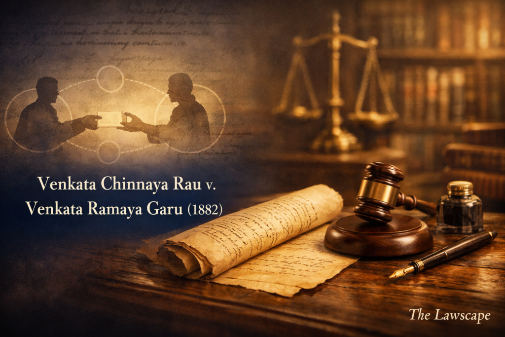 Consideration lies at the heart of contract law, functioning as the doctrinal filter that distinguishes legally enforceable promises from moral or social obligations. The Indian Contract Act, 1872 codified this principle through Section 2(d), deliberately articulating a definition that diverges from the narrower English common law formulation. The Madras High Court’s decision in Venkata Chinnaya Rau v. Venkata Ramaya Garu stands as one of the earliest judicial interpretations of this statutory provision and remains a cornerstone authority on the doctrine of consideration in India.